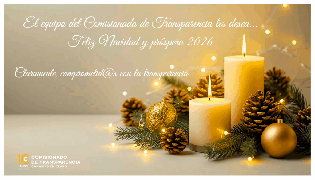 Desde el Comisionado de Transparencia y Acceso a la Información Pública de Canarias queremos compartir con la ciudadanía nuestros mejores deseos en estas fechas tan especiales. La Navidad es un tiempo para la reflexión, el encuentro y el compromiso con los valores que fortalecen nuestra convivencia. Entre ellos, la transparencia,